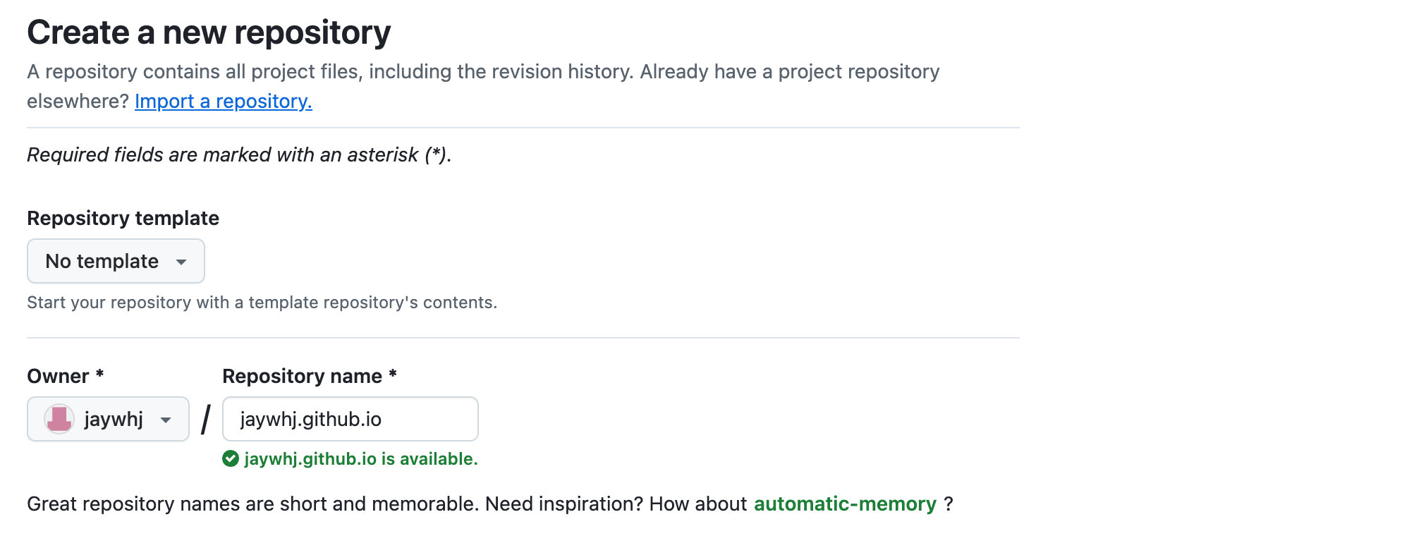 - New repository,仓库名建议为